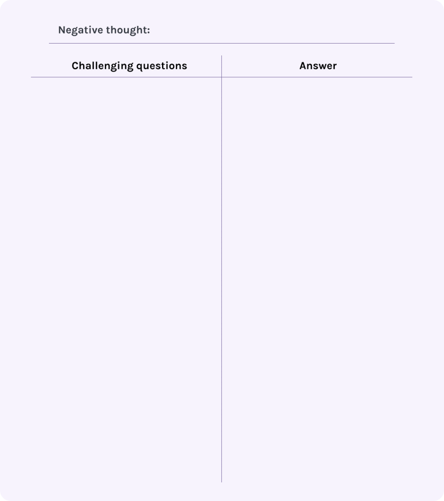 The following activity can help you challenge and replace negative self-talk.